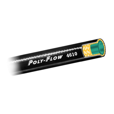 The POLY FLOW SERIES 4610 LATERAL LINE CLEANING HOSE is a high-performance hose designed for use in a variety of applications including high pressure water cleaning, lateral sewer lines, and water jetting equipment. However, it should not be used for hydraulic purposes.