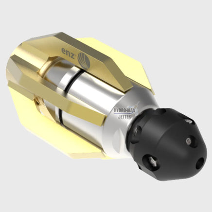 The enz 3/4" Bulldog Rotating Nozzle is Engineered for Versatility, Effectively Cleaning Pipes from 3" to 8" Using Both Recycled and Fresh Water Sources. Nozzle has 3 Side Jets and 3 Rear Jets for Powerful Cleaning Action on Root and Grease. Its Innovative Sliding Bearing Design Ensures Compatibility with Virtually Any Type of Recycled Water. An Integrated Oil-Free Braking System Minimizes Wear and Tear While Precisely Controlling Rotation Speed, Optimizing Cleaning Efficiency and Reducing Operational Costs. Swiss-made for Exceptional Quality and Performance.